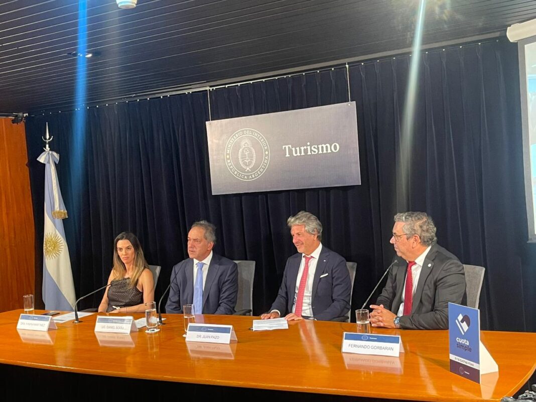 Fue anunciado la incorporación de Turismo a Cuota Simple, un programa que permitirá viajar por el país comprando servicios turísticos en tres y seis cuotas fijas, con un costo financiero total del 93,5%, que a pesar de ser la menor tasa del mercado, convengamos, no es algo para que se forme fila para comprar. Formaron parte de la presentación el secretario de Turismo, Ambiente y Deportes, Daniel Scioli; el secretario de Industria y Desarrollo Productivo, Juan Alberto Pazo; la subsecretaria de Turismo, Yanina Martínez; y el vicepresidente de la Cámara Argentina de Turismo, Fernando Gorbarán.