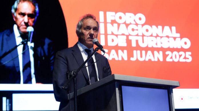 El secretario de Turismo, Ambiente y Deportes de la Nación y presidente del Instituto Nacional de Promoción Turística (Inprotur), Daniel Scioli, participó de la apertura del Foro Nacional de Turismo 2025 en la ciudad de San Juan, junto al gobernador de esa provincia, Marcelo Orrego. El evento, que es una iniciativa estratégica del Consejo Federal de Turismo, finaliza el jueves, cuenta con más de 1600 inscriptos y fue declarado evento de interés provincial.