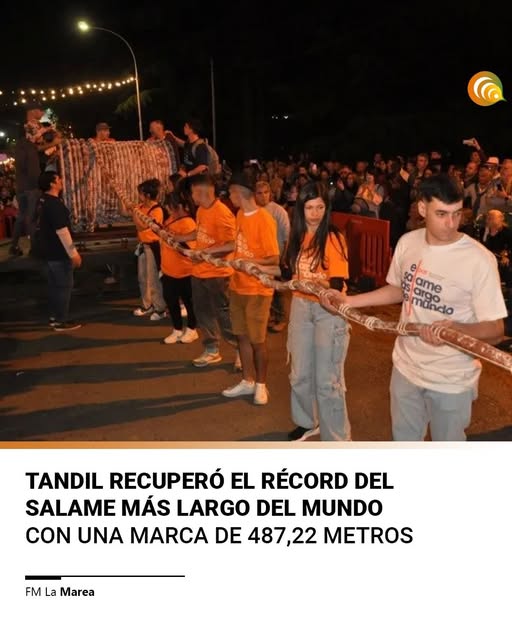 Fin de semana histórico en Tandil: la ciudad serrana volvió a quedarse con el récord del salame más largo del mundo, alcanzando una impresionante extensión de 487,22 metros. La medición oficial se realizó este sábado por la noche, ante una multitud que colmó la diagonal Illia en el marco del festival Chacinar, la gran fiesta del salame y el cerdo.