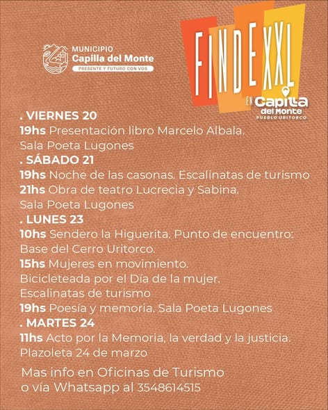 Lunes 23 – 10 hs: Sendero La Higuerita, una caminata guiada desde la base del Cerro Uritorco para disfrutar la naturaleza.