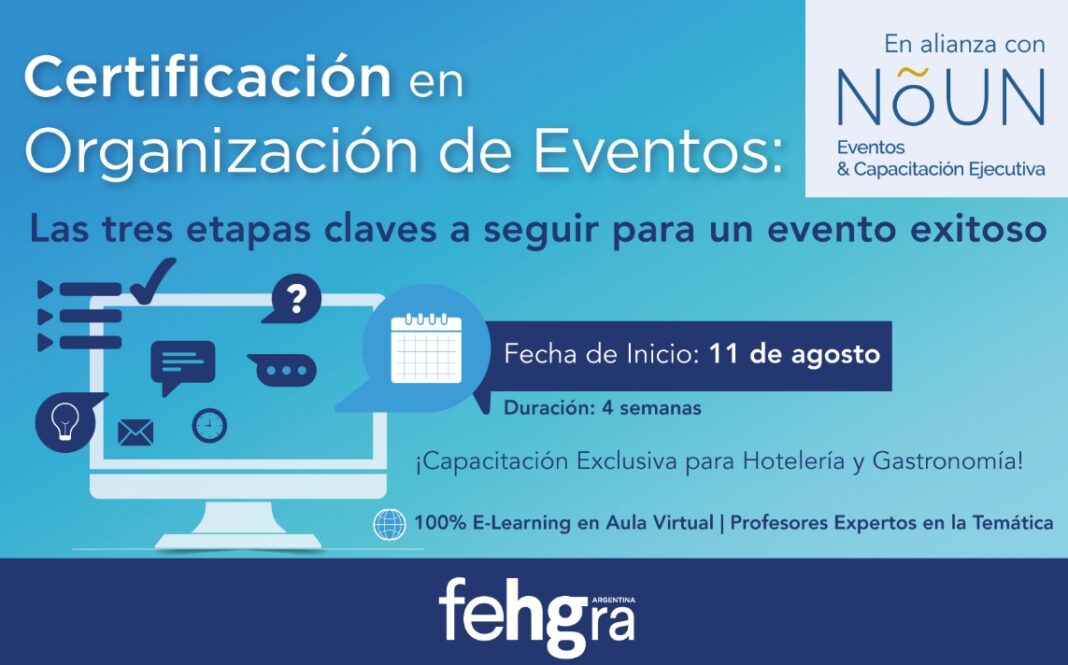 FEHGRA lanza la “Certificación en Organización de Eventos: Las tres etapas clave para un evento exitoso”, una capacitación diseñada especialmente para empresarios y empleados de hoteles y establecimientos gastronómicos que se desempeñan en áreas de marketing, relaciones públicas, publicidad, banquetes, bodas o A&B.