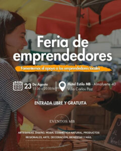 Este sábado 23 de agosto, el Hotel Estilo MB de Villa Carlos Paz abrirá sus puertas para una doble propuesta: la feria de emprendedores locales y una merienda buffet en el restaurante Estilo Argentino.