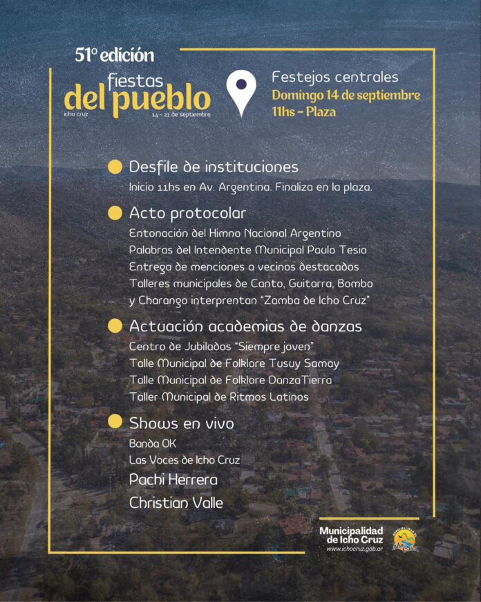 En la localidad serrana de Icho Cruz se llevarán a cabo los festejos patronales con intensa actividad artística y cultural.