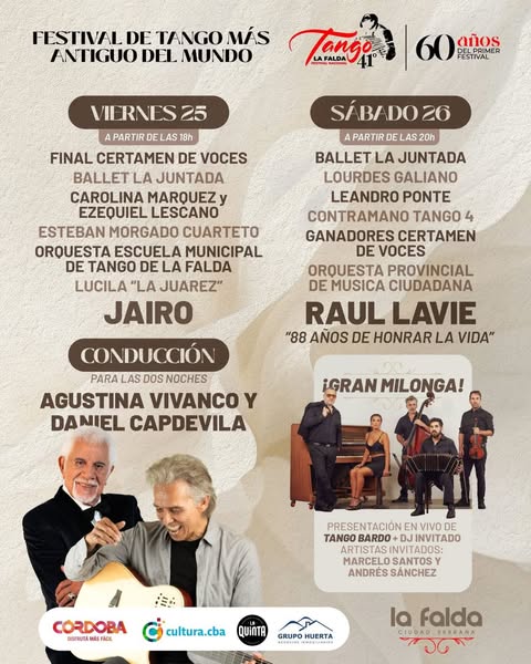Este 25 y 26 de julio, en el Auditorio Municipal “Carlos Gardel”, vení a vivir dos noches de gala inolvidables repletas de tango, emoción y tradición, celebrando también los 60 años del festival