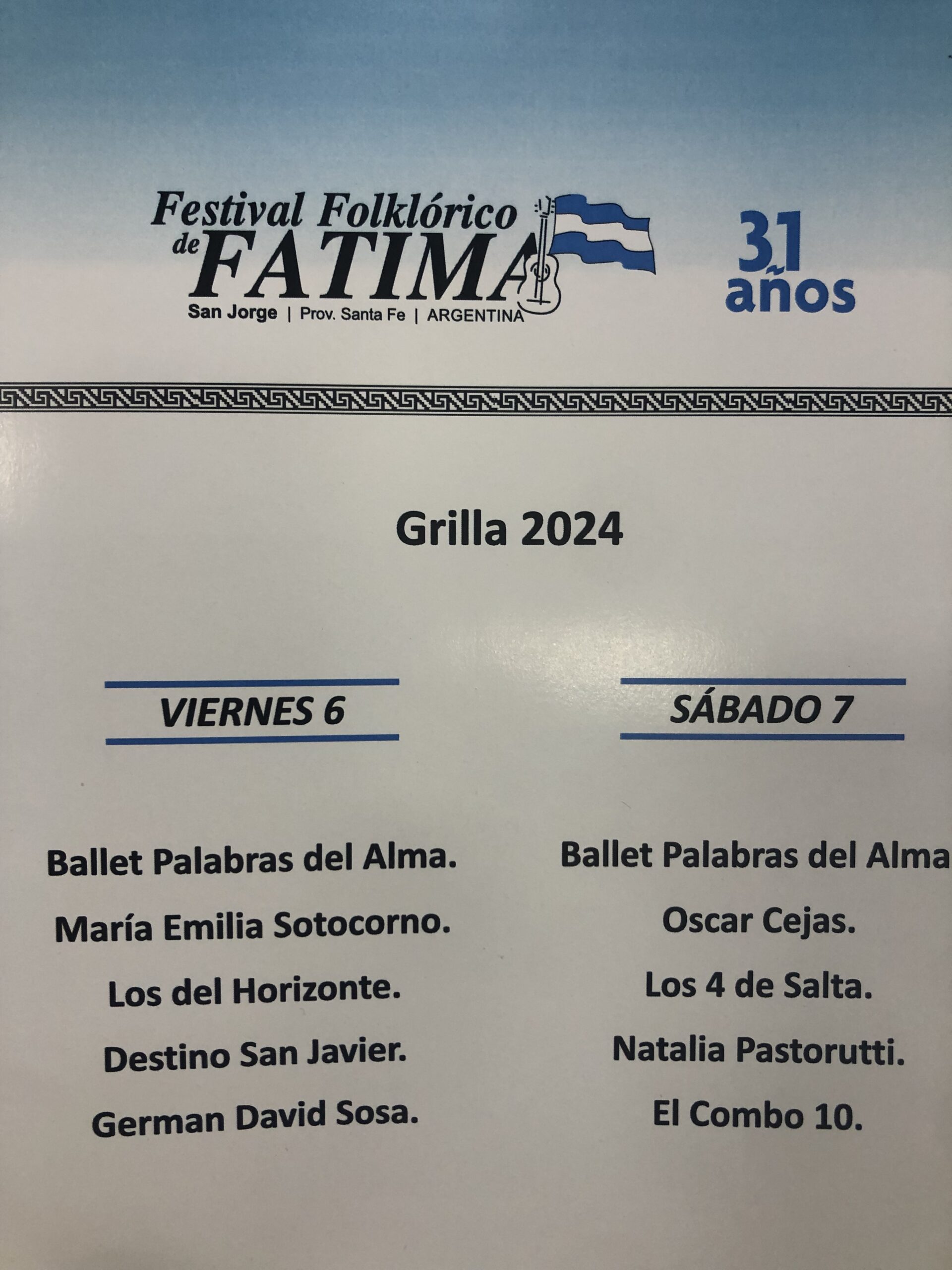 LOS prinicipales artistas serán Destino San Javier el viernes 6 y Naty Pastorutti el dia sabado 7 de diciembre
