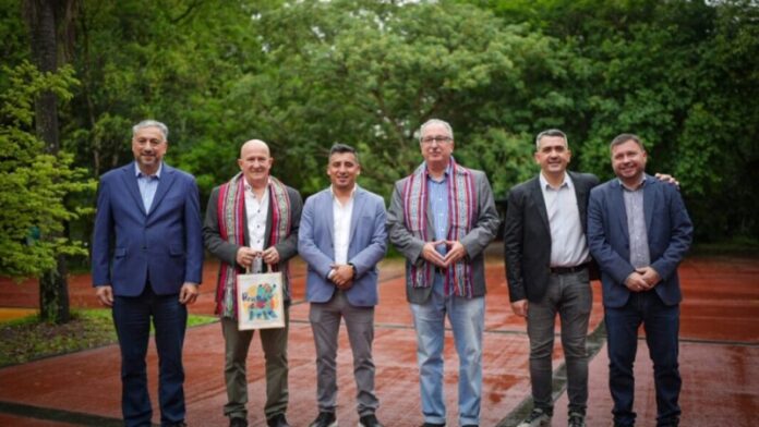 El Gobernador de Misiones, Hugo Passalacqua, junto a los los intendentes Claudio Raúl Filippa de Puerto Iguazú y Elvis La Torre Uñacori de Machu Picchu, el Ministro de Turismo de Misiones, José María Arrúa, el Presidente del ITUREM, Leopoldo Lucas, y representantes del sector privado, cámaras empresariales y prensa, sellaron un hermanamiento histórico en un marco de profunda emoción y orgullo para la región.