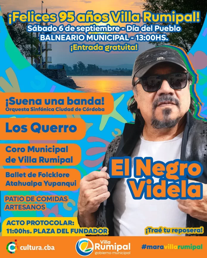 La municipalidad de Villa Rumipal confirmó una gran fiesta popular para el próximo 6 de septiembre, con motivo del 95º aniversario de la fundación del pueblo. La celebración incluirá un acto protocolar y una extensa programación artística en el balneario principal.